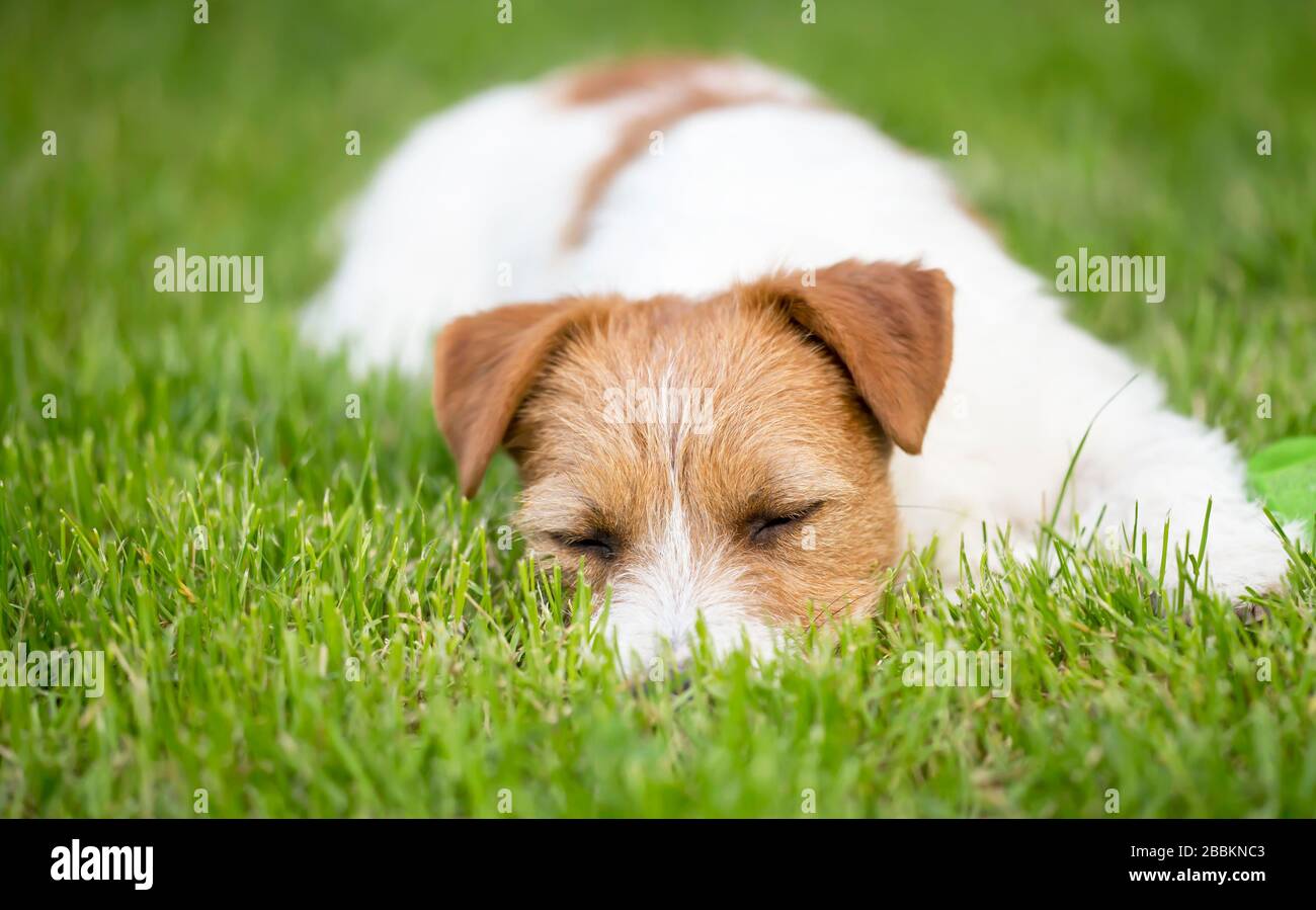 Resting Dog Lazy Cute Jack Russell Pet Puppy Sleeping In The Grass Stock Photo Alamy